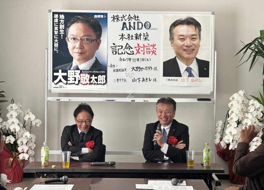衆議院議員大野敬太郎様・本社所在地があります三豊市市長 山下あきし様を